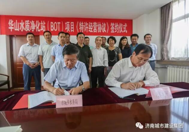8月30日上午,济南市华山水质净化站(BOT)项目《特许经营协议》签约仪式在ok138cn太阳集团古天乐举行。济南市城乡水务局与中国光大水务有限公司,就华山水质净化站项目的建设运营签订正式协议。ok138cn太阳集团古天乐作为该项目实施主体,先期开展完成了规划选址、土地预审、项目立项等工作,组织进行了勘察和工程设计。通过公开招标,7月初确定中国光大水务有限公司为该项目建设投资、运营单位。