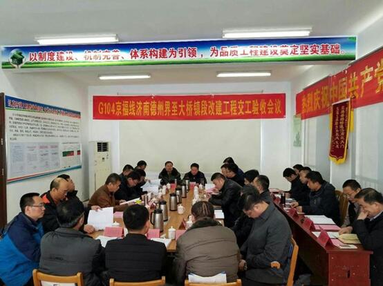12月19日,济南市公路管理局组织召开了G104京福线济南德州界至大桥镇段改建工程交工验收会议。济南市交通工程质量监督站、济阳县和天桥区国道104线公路建设协调指挥部、济阳县公路管理局、济南市公路管理局市郊公路管理处、项目各参建单位等单位相关领导及人员参加了验收会议。会议还邀请了济南市安全生产监督管理局、济南市公安局交警支队有关领导一同参加。