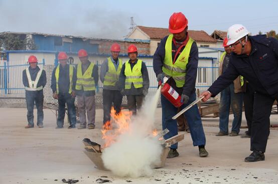 冬季是火灾高发季节,为把消防安全工作落到实处,提高火灾应急能力,让员工熟练掌握灭火器的使用方法,确保消防安全, 活动现场,首先由安全科长庄景亮对施工人员普及宣贯如何避免火灾、发生火灾时如何自救逃生及火灾应急处理相关注意事项等知识,并讲解如何辩别、使用干粉式灭火器。随后,对灭火器正确使用进行现场指导,同时大家逐一亲身体验灭火器的操作使用并进行现场灭火。最后,在项目部安全科人员组织指导下,企业员工有序的参加了以疏散、逃生、自救为主的消防演练活动。