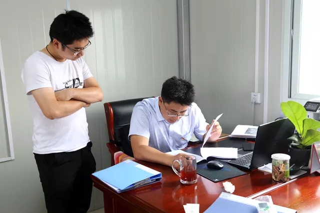 8:50济南齐鲁黄河大桥建设指挥部,我们如约见到了赵世超。一进入项目部“板房”办公室,他就立马打电话安排起了今天的工作,这种工作状态,早已是他熟悉的工作节奏。从2001年毕业开始,赵世超就一直住板房、跟工程,有着17年项目一线工作经验的他,是建设一线一名结结实实的“老将”。