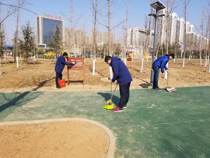 3月2日上午,资产运营公司团委组织青年团员志愿者到济南市政综合指挥调度中心大楼南侧的社区公园进行义务大扫除活动。