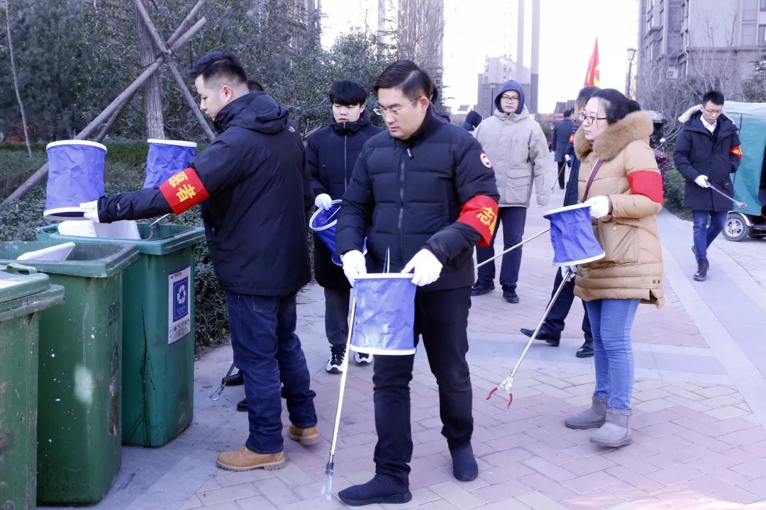 学习会议结束后,参建人员到社区内开展环境综合治理活动,集中清理社区垃圾,优化美化社区环境,确保社区以最好的状态迎接全国文明城市测评。