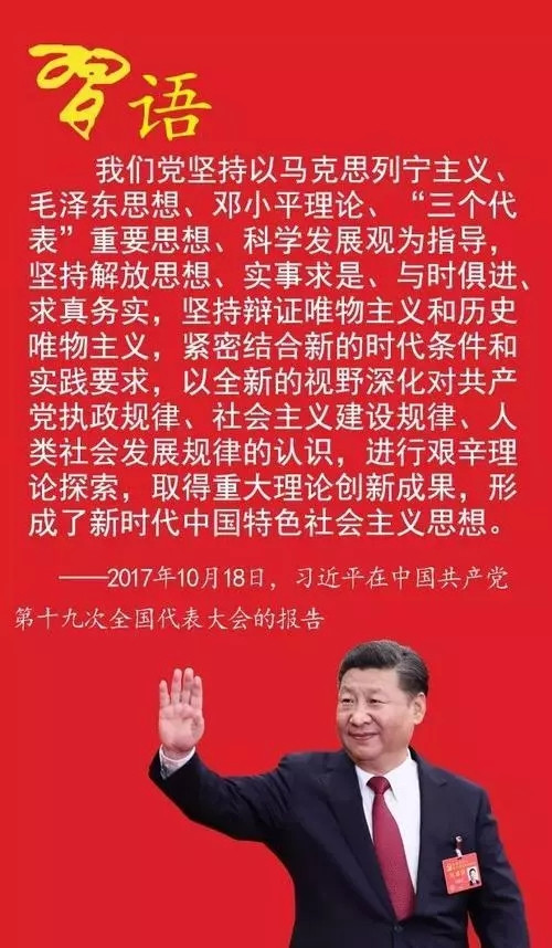 随着十九大通过《中国共产党章程(修正案)》,中国共产党的旗帜上又写上了习近平新时代中国特色社会主义思想。