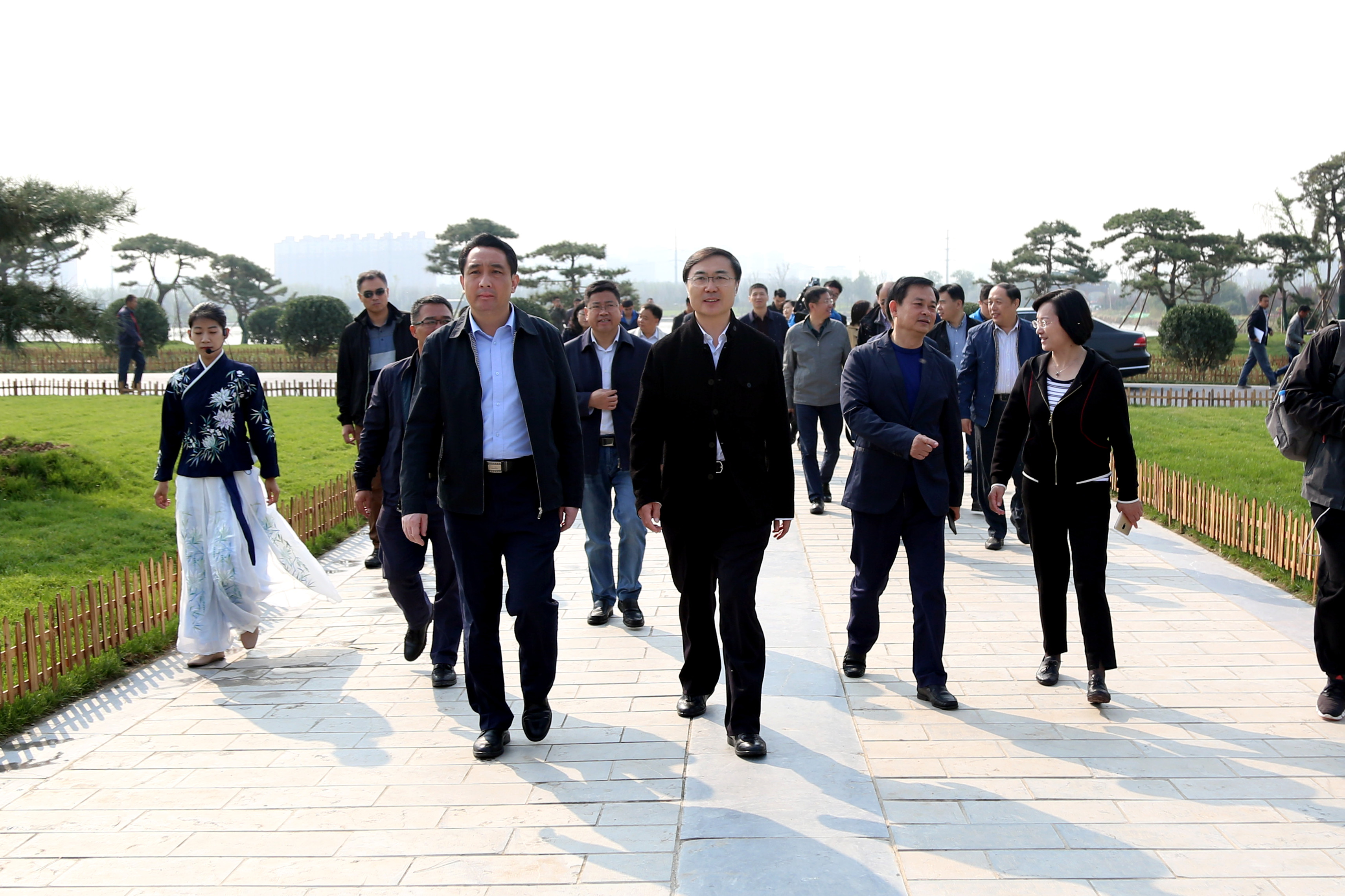 杨峰一行首先实地察看了华山历史文化湿地公园,在现场详细听取了相关负责人对华山片区建设工作的汇报后,杨峰对活动及赛事的前期筹备工作给予充分肯定,同时对华山景区高水平设计和施工建设给予高度评价。随后,在ok138cn太阳集团古天乐召开的座谈会上,杨峰听取了“华山论坛”以及环华山湖国际半程马拉松赛两个活动的筹备工作汇报。