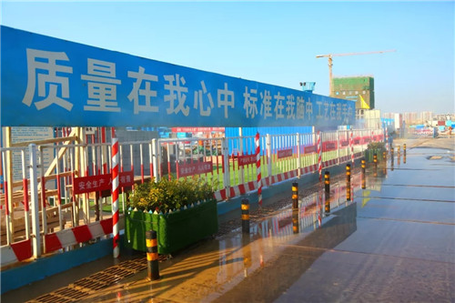 在有序推进建设进度的基础上,项目施工中严格遵守扬尘污染治理和安全生产的相关规定措施,对存在的不足和问题快速彻底整改到位,认真落实市委市政府建设工程扬尘污染治理“四个一律”和“六个百分之百”工作要求,采取在施工现场配备雾炮机进行湿法作业,施工现场道路及材料堆放场地铺混凝土路面或钢板路面进行硬化处理,安装智能化扬尘检测系统及绿网覆盖等措施,确保各个阶段扬尘防治工作万无一失。