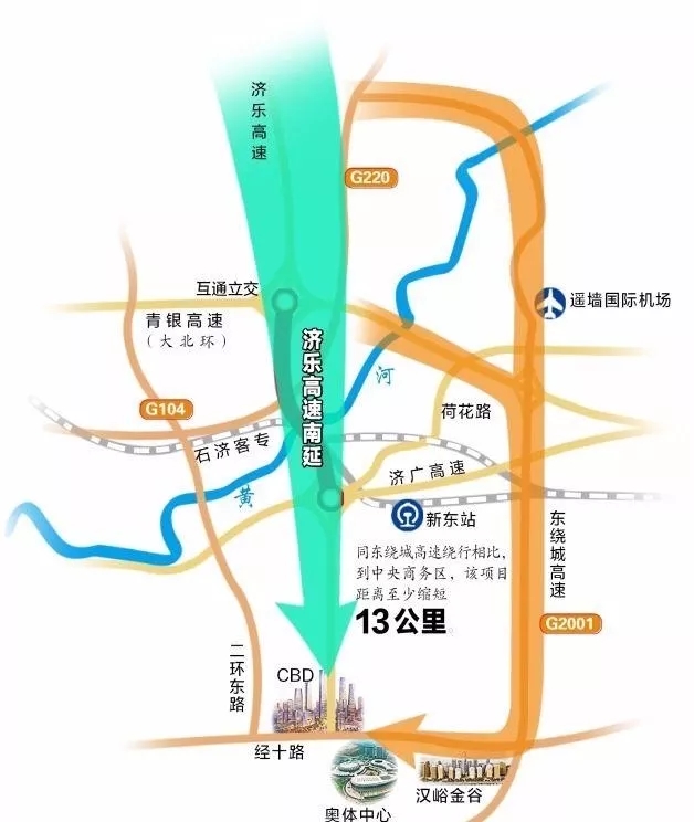 济乐高速南延项目建成以后,将成为黄河北部地区到达市区东部和中央商务区最便捷的通道,极大缩短黄河北地区与市区的时空距离,济阳、商河通过高速路可以直达中央商务区,同经过东绕城高速绕行相比,距离至少缩短13公里,对拉动黄河北部县域经济发展有很大的促进作用。