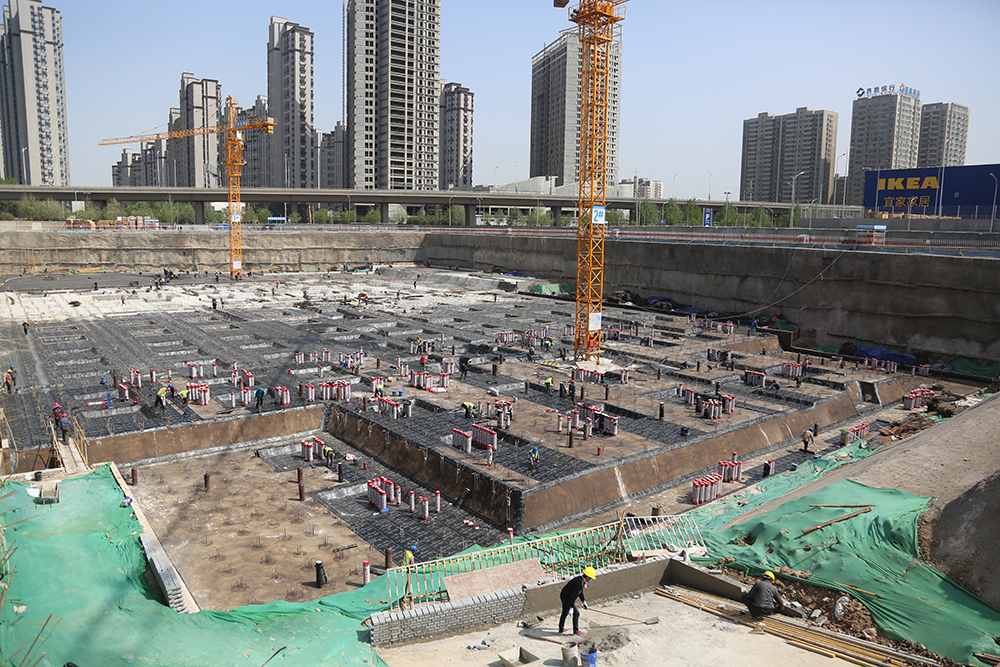 迪卡侬项目北邻西部会展中心,东临二环西路,南侧紧邻宜家项目,西侧为大片居住办公混合区。项目总建筑面积为3.2万平方米,总计四层,其中地上两层,地下两层。自项目进场施工以来,已完成支护工程与抗浮锚杆的建设,正在进行基础防水、筏板基础施工及钢筋的绑扎等工作。