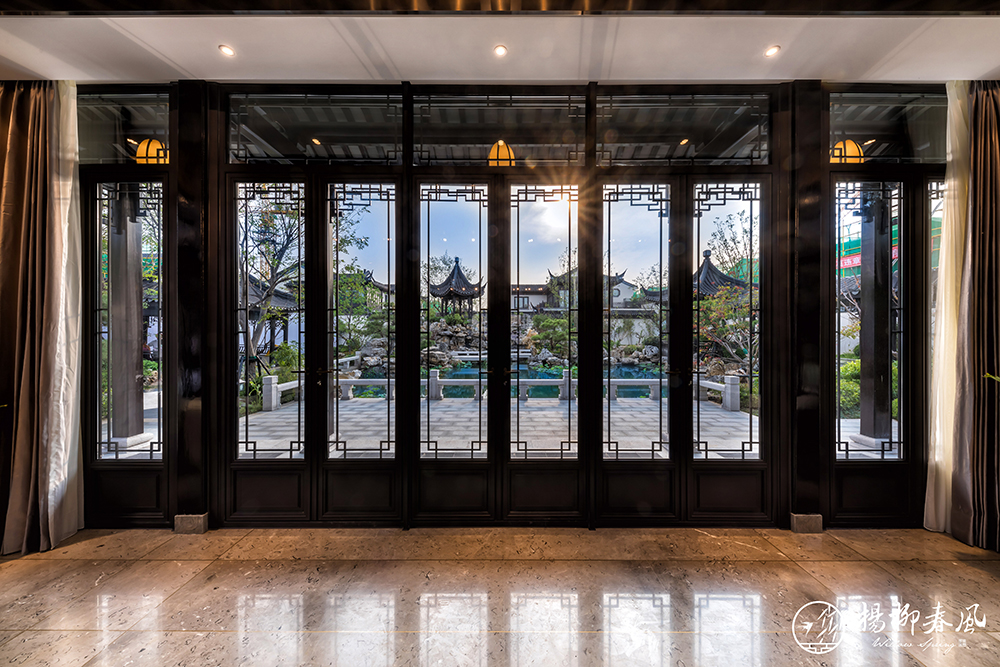 此次对外开放的样板房一种为新亚洲风格,以“礼”、“乐”为创作灵感,巧妙借用了中式园林框景的手法来演绎时尚的气质,将室外园林造景与室内装饰相结合,是古典与现代的一次碰撞。在空间布局上,多处采用中轴对称的传统中式手法,大气之中也展现着家族礼序。南北双庭院、连接私享露台的主卧套房、挑空设计的大面积地下空间,处处彰显着大家风范,在古朴的韵味中体现出一份现代的质感。