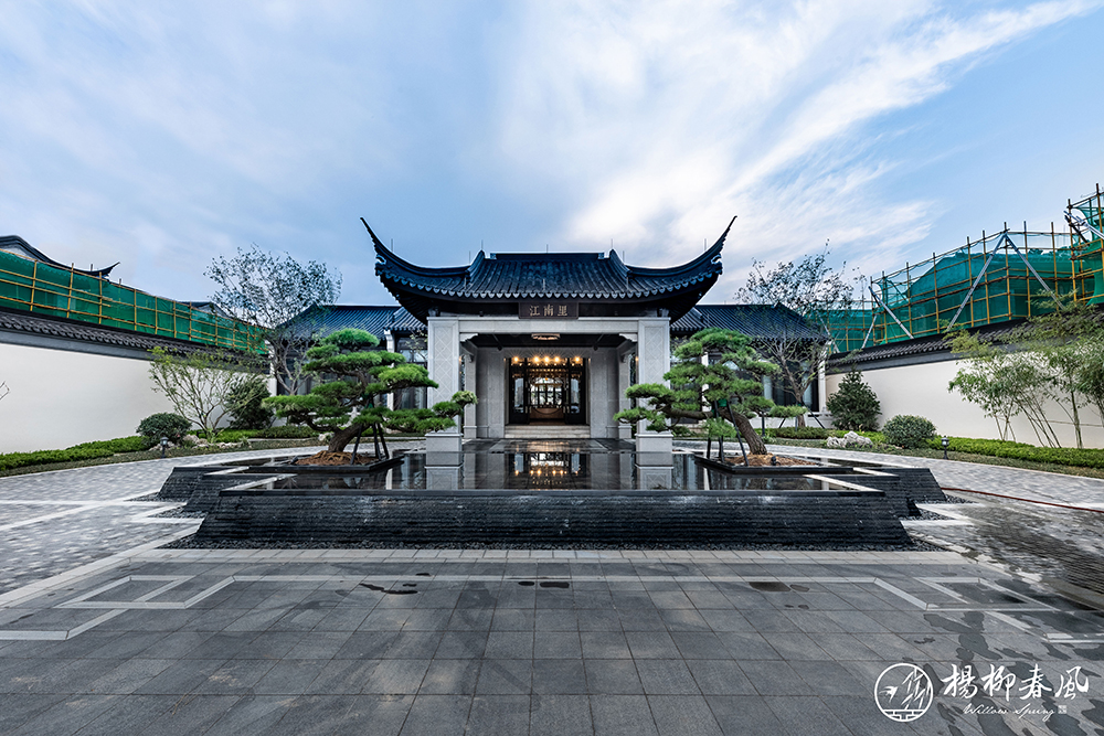 除了精雕细琢的样板房,在整座生活美学馆很多不为人知的营造细节里,都流淌着匠心的温度。主入口的两株黑松,在考虑了位置、造型、气候条件、生长习性等众多因素后,才最终从杭州萧山的花木城里找到了最合适的树种;样板区的十字海棠铺地,是由工匠们纯手工一片一片拼接而成,让每一步踏出生活动人的回响……