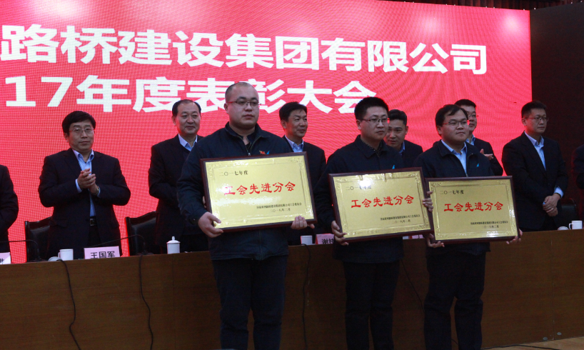 会议结束后,进行了集团公司2017年度表彰大会。对2017年度集团公司先进集体、先进工作者;安全生产工作先进集体、先进个人;工会先进分会和工会积极分子;科技创新工作先进集体、先进个人;优秀项目经理、项目总工和职工查隐患工作先进个人;集团公司派遣人员贡献奖;优秀配属单位和优秀材料供应单位进行了表彰,先进集体及个人代表分别上台进行了领奖。