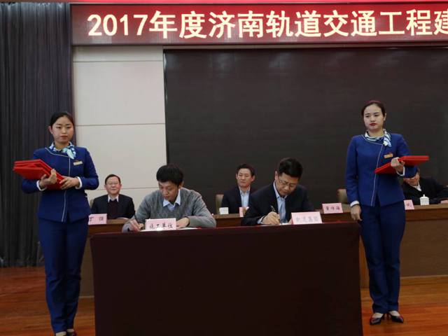 2月1日,济南轨道交通集团召开2017年度济南轨道交通工程建设工作会议。济南市城乡建设委副主任武兆军;市城乡交通运输委副主任罗卫东;市轨道交通集团党委书记、董事长陈思斌,党委副书记、总经理修春海;轨道交通集团各部门、各项目管理中心、各子(分)公司负责人;济南轨道交通各参建单位分管领导、各标段总监;勘察单位、设计单位、咨询单位项目负责人共约170人参加会议。