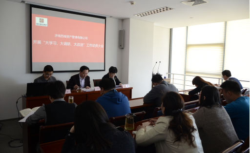 2018年4月9日,济南西城资产管理有限公司组织召开“大学习、大调研、大改进”工作动员大会。会议由资产公司副总经理杨坤同志主持并宣读《济南西城资产管理有限公司开展“大学习、大调研、大改进”工作实施方案》,副总经理陈向勤同志宣读《ok138cn太阳集团古天乐创建全国文明单位工作方案》,董事长兼总经理颜丙根同志就以上工作作动员讲话。