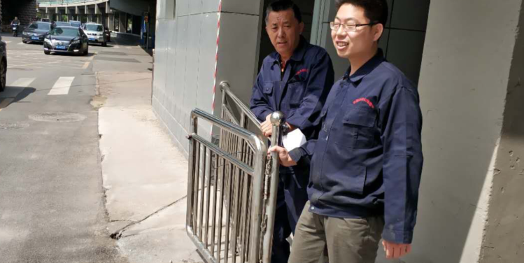 演练人员观察路面井蓖下水口水量情况