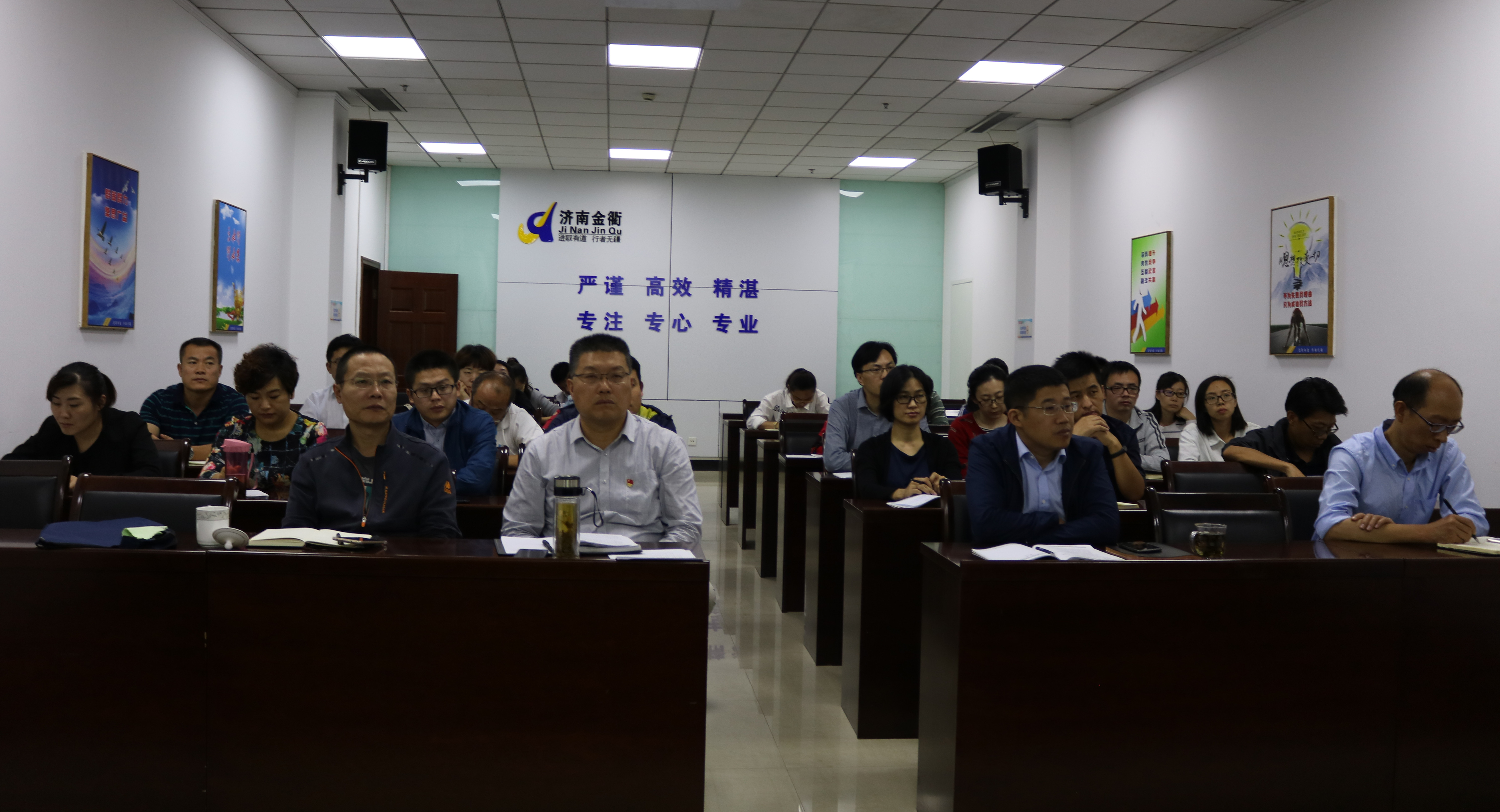 为贯彻落实新时代党的建设总要求,进一步加强国有企业党的领导与建设,提高党员干部思想政治素质,增强党性修养,夯实党建工作基础,2018年9月30日下午,济南金衢公路勘察设计研究有限公司党支部、济南金诺公路工程监理有限公司党支部组织全体党员、中层及以上干部、积极分子五十余人在金衢公司第一会议室进行党课学习。
