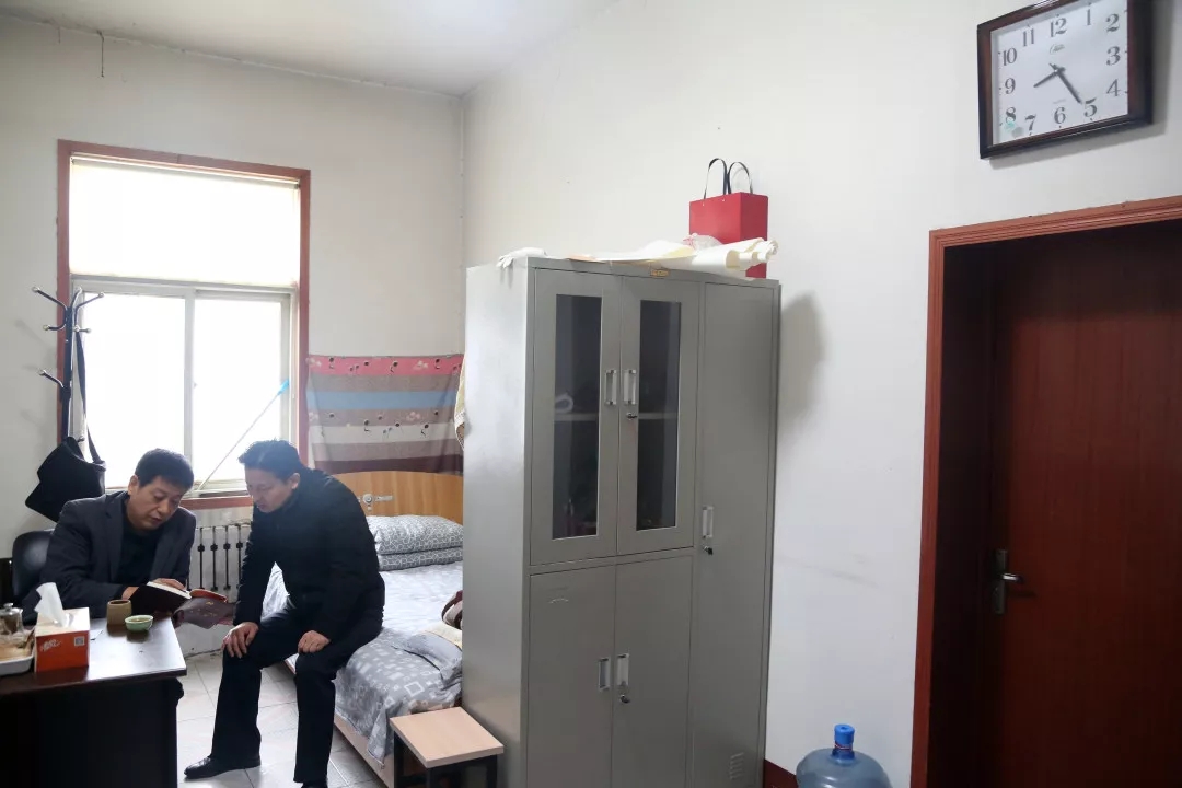 8:25这处不到20平米的房间,是张庆红在新市镇的办公室兼卧室。早饭过后,张庆红与管区(镇与村之间的行政机构)书记尹玉吉沟通交流近期的工作。“张书记事必躬行,村里很多工作都亲自抓、扎实干,路楼村这几年取得的成绩,大家有目共睹”,尹玉吉说道。