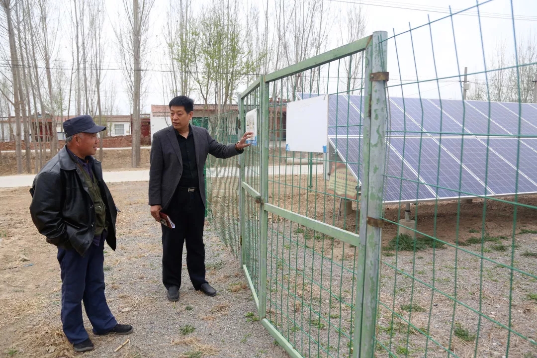 走访途中,张庆红察看光伏发电项目的维护使用情况。路楼村经济发展后劲不足,经过多方调研、论证,该村引进光伏发电项目。目前,光伏发电已成为农民增收、贫困户脱贫的新抓手。