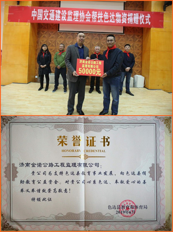 积极参与脱贫攻坚事业是一个有社会责任感的企业服务社会、回报社会的重要体现。不忘初心,牢记使命,济南金诺公路工程监理有限公司作为中国交通监理协会的理事单位,将持之以恒的为贫困地区脱贫攻坚事业贡献力量,持续关注色达孩子的教育和成长,尽企业的绵薄之力,为社会和谐进步和民族团结和谐贡献力量。