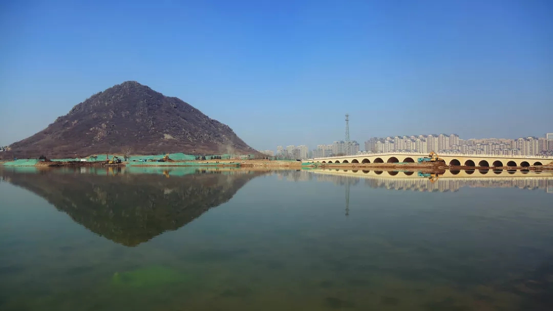 转至华山东侧,主体施工完毕的烟雨桥正在进行外部装饰,烟雨桥从南卧牛山一带直通华山东侧,桥长200米,桥面净宽14米,设计为21孔连桥,是济南所有景观桥中孔数最多的一座,亦胜过颐和园长度为150米的17孔桥。目前烟雨桥桥面铺装及拱圈装饰工程都已施工完成,正在进行栏杆安装、桥面景观照明及石材整修施工,计划3月中旬完成全部施工任务。