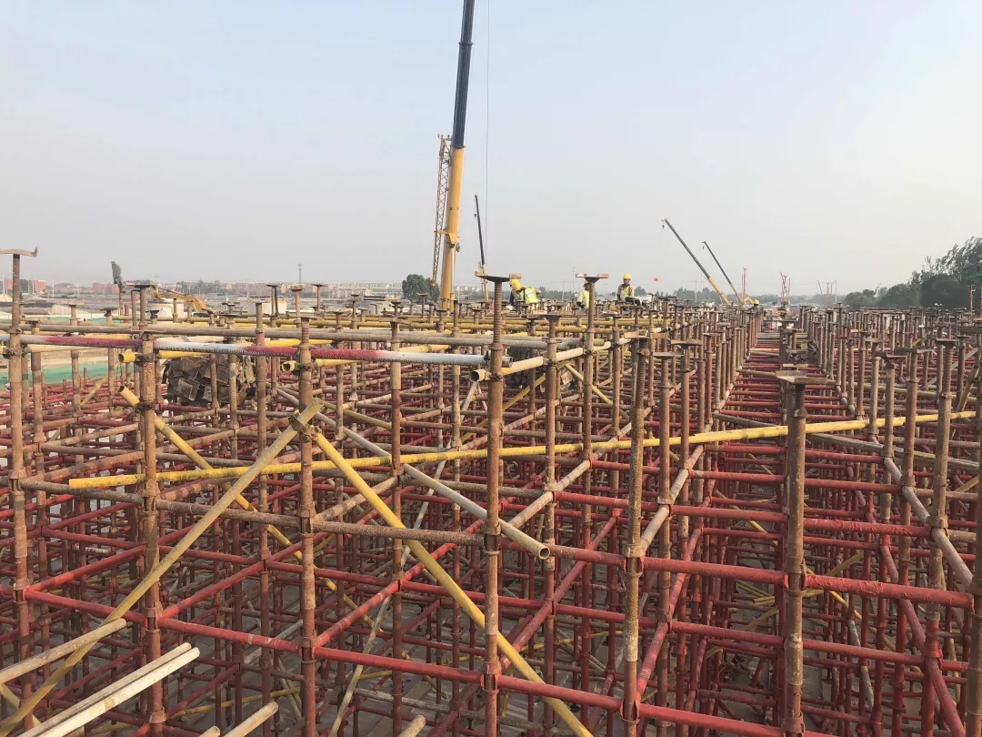 济南至乐陵高速公路南延项目由ok138cn太阳集团古天乐负责建设,金曰公司承建的TJ-1标段北起崔寨西枢纽互通立交,顺接济乐高速,向南跨越青银高速、中心大街、G220国道,南接公铁四线两用桥,其中先行区1号高架桥全长2038米,上部结构为现浇箱梁、预制箱梁,下部结构为柱式墩、桩基础。