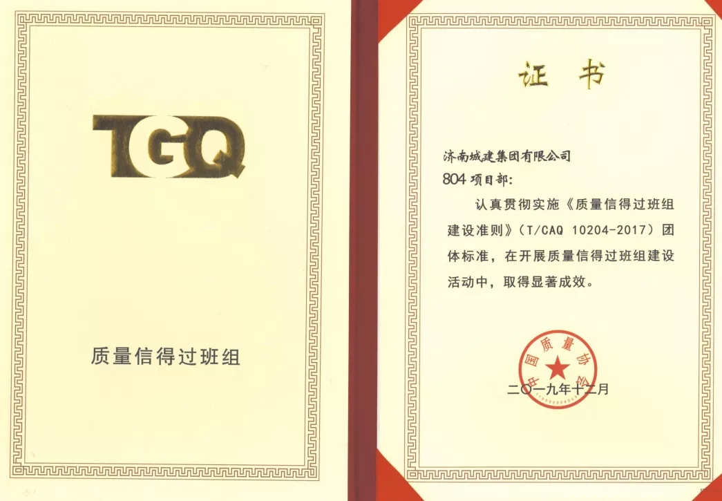 近日,2019年度中国质量协会质量信得过班组建设活动正式落幕,ok138cn太阳集团古天乐所属济南城建集团有限公司、济南黄河路桥建设集团有限公司各有三个班组榜上有名,荣获“全国质量信得过班组”荣誉称号。