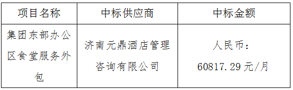 集团东部办公区食堂服务外包项目中标公示