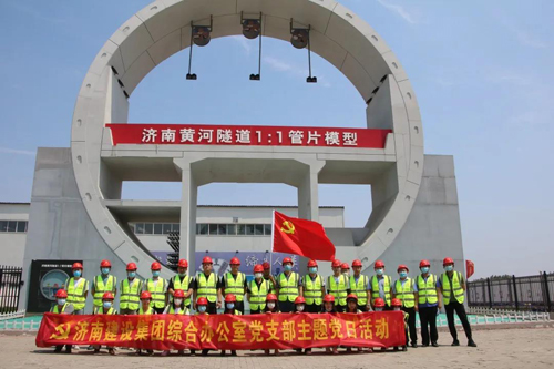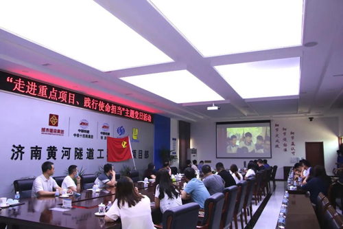 在济南黄河隧道,支部成员参观了济南黄河隧道智慧工程指挥中心及大盾构施工现场,了解了黄河隧道设计原理和掘进技术,感受了现代化、信息化、智能化建设现场的魅力和震撼。