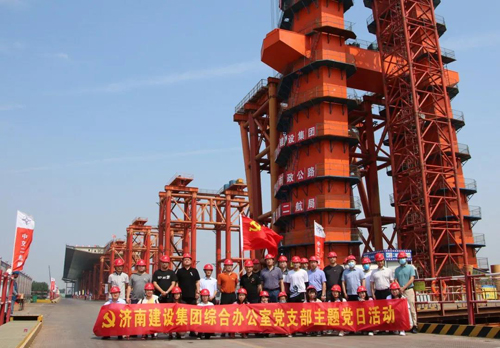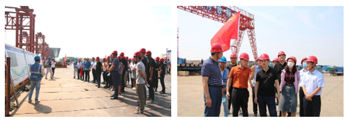 在凤凰黄河大桥,项目负责人对钢塔、钢箱梁顶推和跨堤引桥施工以及安全、质量、进度、环保和疫情防控等情况进行了介绍,支部成员进行了现场参观。