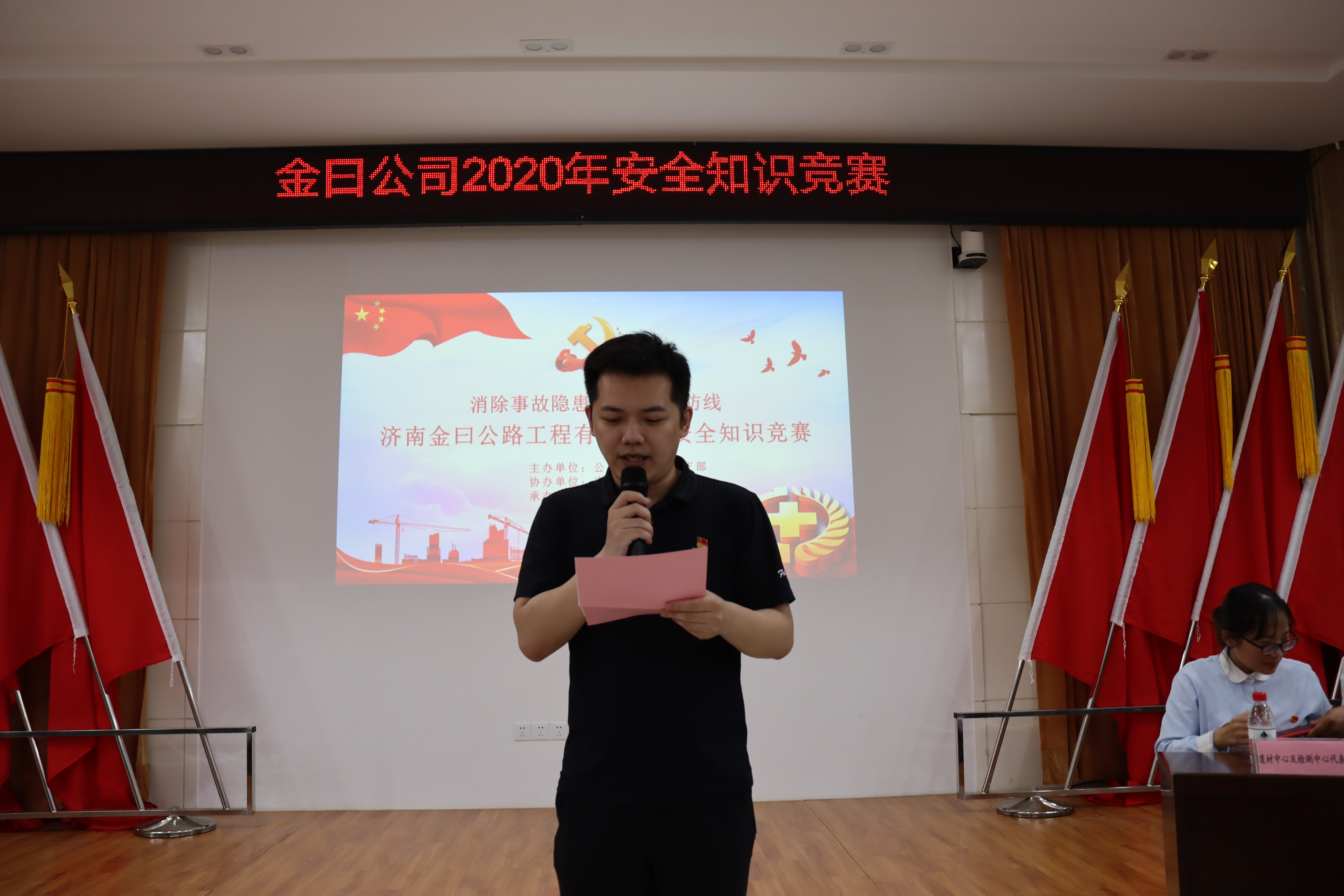 为响应2020年安全月“消除事故隐患,筑牢安全防线”的主题号召,全面贯彻上级党委对安全生产工作的部署,普及安全生产知识,济南金曰公路工程有限公司团支部于6月24日举办了安全知识竞赛。建设集团团委书记张旸、安委办侯守军主管、市政资产运营公司团支部书记王一丁、齐鲁交通集团济南公司副总田中亚等出席活动并担任活动评委。