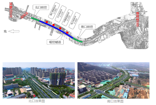 济南市顺河快速路南延(英雄山立交至南绕城高速)建设工程是济南市“两横、三纵”快速路网的重要组成部分,项目北起英雄山立交、南至南绕城高速,全长约5.1公里。项目一标段由济南城建集团有限公司承建,北起英雄山立交、南至鲁能领秀公馆,全长约2.2公里,主要包含1.5公里暗挖隧道、0.7公里明挖段以及配套综合管廊、排水、道路、专业管线等工程内容。