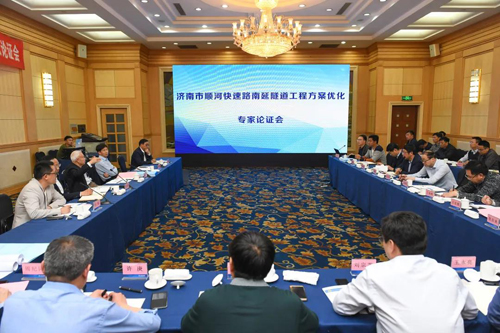 2019年4月,由城建集团组织的顺河快速路南延隧道工程方案优化专家论证会在济南召开,会议邀请了中国工程院院士、国家最高科学技术奖获得者钱七虎等多位国内知名专家参会,经专家论证决策,将工程原设计双侧壁导坑施工法优化为单侧壁导坑法,大大减少了隧道施工工序,节省出大量施工时间。同时,采用掘进机冷开挖为主、钻爆开挖为辅的方式进行隧道开挖,掘进机开挖噪声小、安全性高、社会危害性低、易于控制施工进展,弥补了钻爆开挖振动大、对围岩整体性破坏大的缺点。