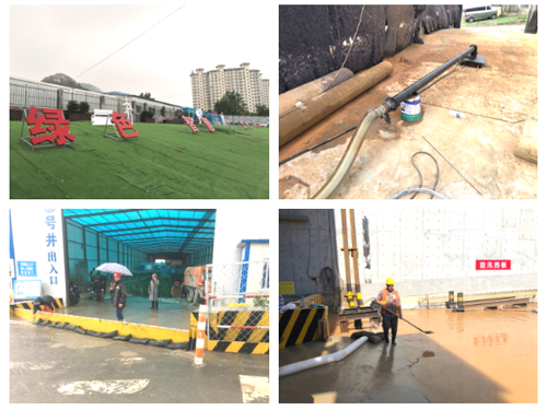 2019年“利奇马”台风影响济南期间,正值隧道内进行大规模主洞开挖的关键时期,由于连续强降雨,隧道内土石分界面处渗水严重,洞内施工一度无法正常开展。为确保隧道安全,项目部将隧道所经地面道路所有雨水斗进行封堵处理,将道路外侧市政绿化带苗木迁移后进行防水处理,避免地表水继续下渗,同时,在渗水严重的部位打设降水井进行降水处理,全线洞内高峰时段调集90余台水泵连续降水。“除此之外,台风期间隧道内不论围岩情况好坏,我们对初期支护一律加强支护参数,每个台阶均安装临时仰拱,确保隧道安全不出问题,通过全体施工人员的共同努力,安全顺利地度过了台风自然灾害期”,郭来耀说道。
