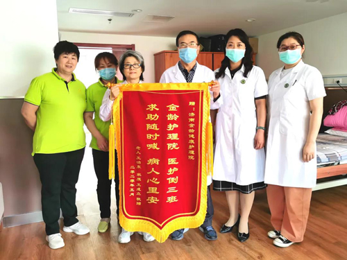 “这种认真工作、高度负责的态度,感人至深,值得我们好好学习,特写此信表达谢意”,近日,一封封感谢信和一面面锦旗在金龄健康·山东济南养老服务中心纷至沓来,入住长者的家属们以此向一线护理员的用心服务,尤其是在疫情期间的辛苦付出表达感谢和敬意。突如其来的疫情如同一场大考,考验着金龄健康的应急管理能力,也考验着它近年来探索打造的养老服务新模式,这些感谢信和锦旗,无疑是对这场考验最好的批注。随着疫情防控进入常态化,金龄健康·山东济南养老服务中心整装再出发,以“诚心、恒心、爱心、责任心”的服务理念,以开拓创新的匠心精神,向着新时代行业标杆品牌目标继续前行。