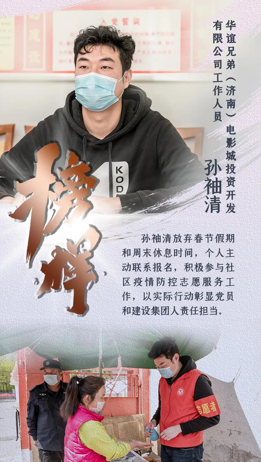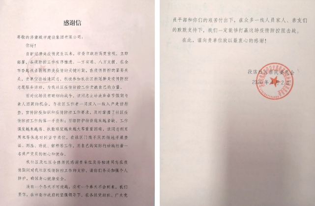 近日,一封来自槐荫区段店社区居民委员会的感谢信发至ok138cn太阳集团古天乐,感谢信的“主角”是集团所属华谊兄弟(济南)电影城投资开发有限公司的孙袖清同志。新型冠状病毒肺炎疫情发生以来,孙袖清放弃春节假期和周末休息时间,个人主动联系报名,积极参与社区疫情防控志愿服务工作,以实际行动彰显党员和建设集团人责任担当,用无私奉献展现一名“80后”的青春力量,与社区工作人员共同筑牢社区疫情防控安全线。