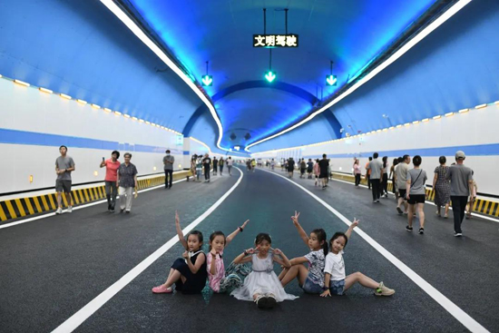 8月31日晚19:00时,大批市民涌入望岳路隧道欣赏“最美星光隧道”,宛若星空般的独特设计,吸引市民纷纷驻足拍照打卡,记录下这美丽又有意义的一刻。
