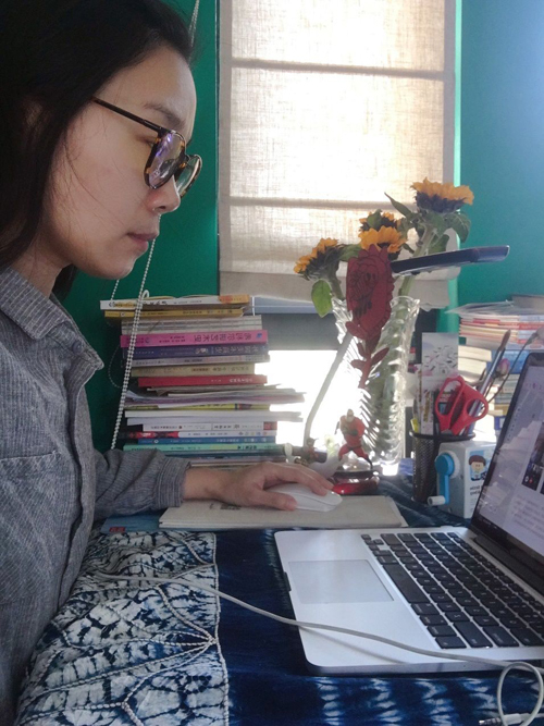 黄佳是山东济西湿地生态农场有限公司运营部网销工作人员,早上8点达到工作岗位,开始了一天的网上接单、电话回访等工作,每天工作12小时以上,常常接打电话几小时顾不上喝水。
