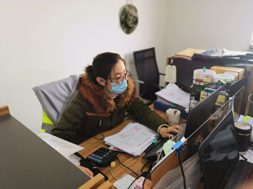 11点45分,金曰公司长清220项目部计划合同部的张强还在紧张的准备新一期计量报表。国道220长清陈庄项目是济南市国省道重点改扩建项目,工期紧,为保工程如期完工,她正月初六便从河北唐山返回济南家中隔离办公。