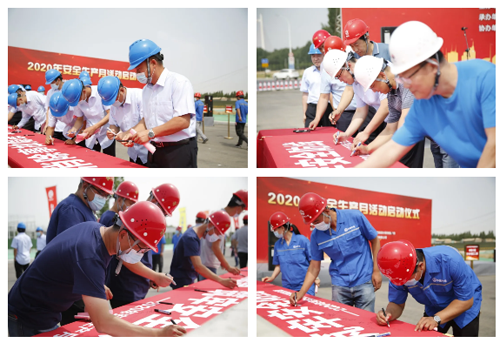 仪式结束后,参加仪式的全体人员在印有“消除事故隐患,筑牢安全防线”安全主题条幅上进行签名。