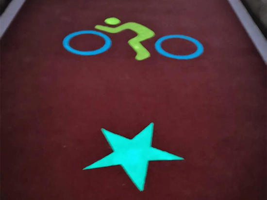 通过在沥青面层填充荧光发光材料,使道路夜间能够发出荧光,让平淡无奇的道路焕发新的生机。荧光材料采用环保无毒材料,提升道路美观性的同时,减少了对环境的影响。