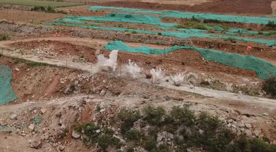 工程设计规划中要对鸡山主峰进行整体挖方,石方爆破段位于济南经十东路以南,高新区鸡山村东南侧,距离最近的居民楼仅为41米,爆破同时兼顾周边的学校宿舍和多家厂区不受影响,路基填筑工程同样难点重重,除了一层层的填土,只生活和建筑垃圾就有100多万立方米,施工时最多60多辆运输车同时作业。