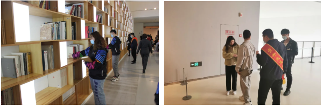 活动现场,志愿者们认真听取了美术馆负责人对“双年展”布展情况的介绍,了解志愿服务内容。经过分工,大家迅速到达自己的指定岗位,维持场馆内外排队观众秩序,热心引导、帮助观众寻找展厅,并协助工作人员整理摆放设施,提醒观众按照美术馆要求文明参观等,获得了馆内工作人员的一致好评。