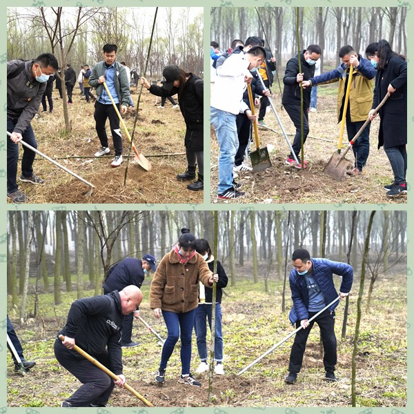 “好雨知时节,当春乃发生”,活动现场,广大党员干部分工协作,有的挖坑铲土,有的扶树正苗,有的踩土定植,大家按照“三埋两踩一提苗”,挖坑、栽树、盖土等各环节都精心对待,栽得认真,干得卖力,整个植树活动现场一片热火朝天的劳动景象。一位位党员干部亲手栽下“希望树”“幸福树”,精心栽下的一棵棵树苗,为春天增添了无限生机,为这片土地穿上“绿装”。