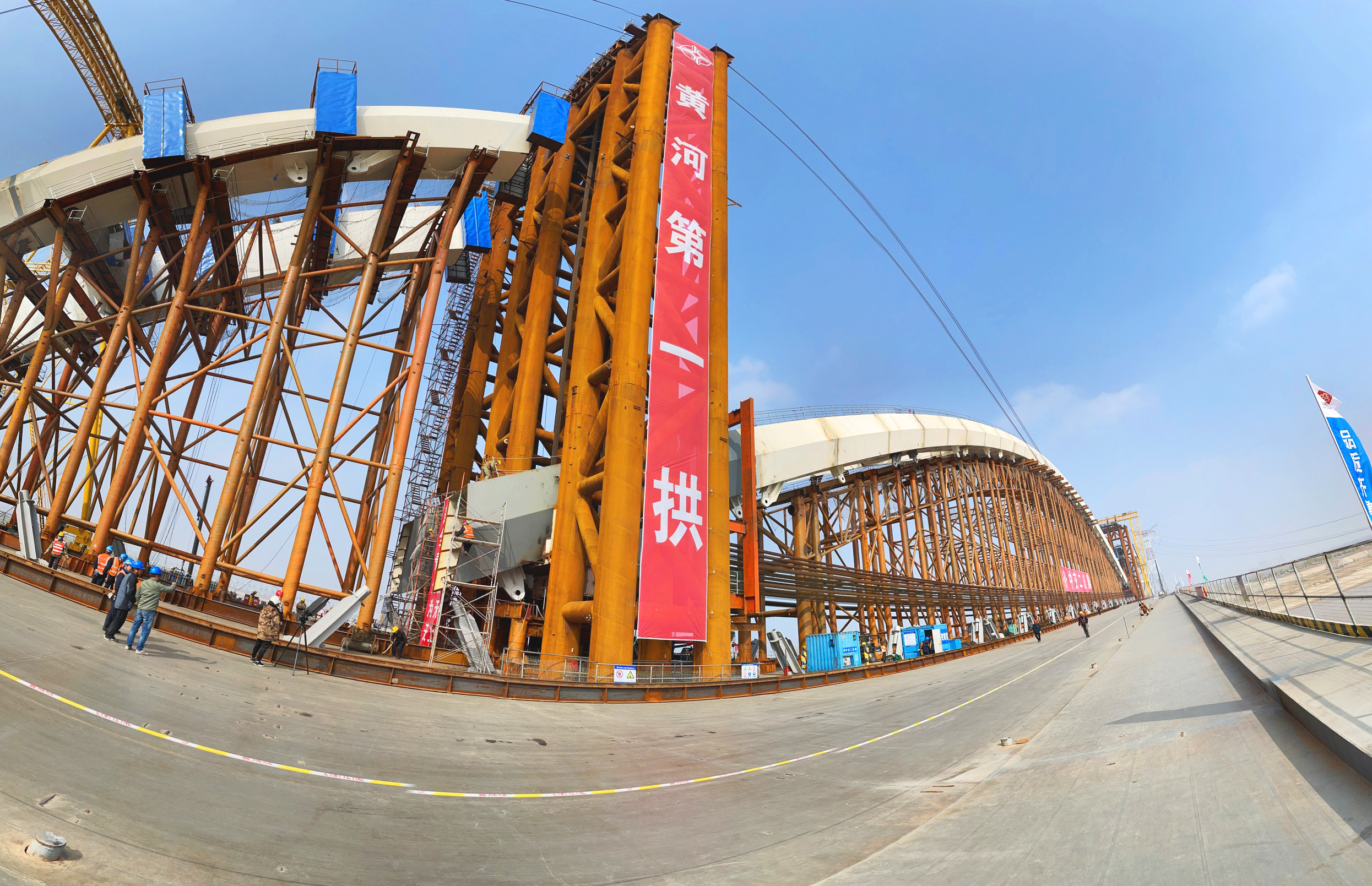 此次拱肋提升,是在黄河上首次采用提升合龙技术,同时也是世界桥梁中首次采用不单独设置合龙段进行拱肋提升合龙作业,实现“黄河第一拱、世界第一吊”。下一步,项目将全力推进南岸280m跨拱肋施工及吊索安装作业,确保年度建设目标如期完成。