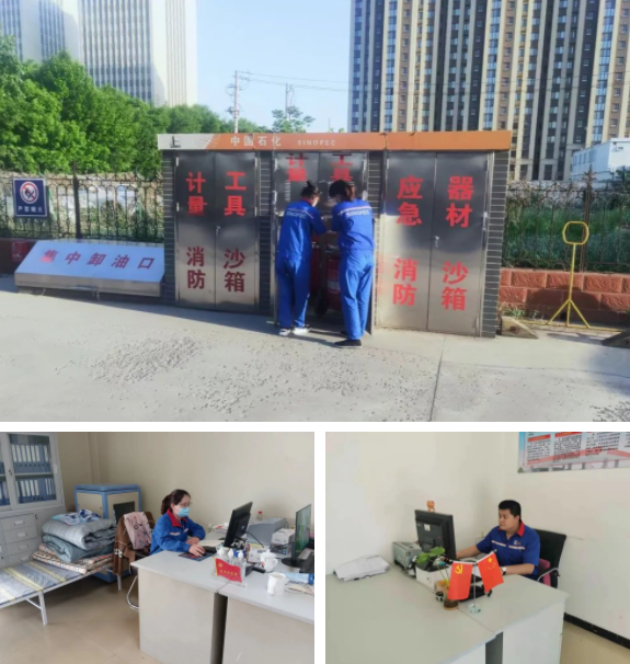 一线员工张秀利、燕光宝、石作花、贾世花、崔新月、李浩、朱洪瑞等同志驻站七天七夜,李芳芳、张波、梁莹莹、魏红红、李慧、周艳秋等同志驻站六天六夜,滨河5站怀孕5个月的丁旭,也义无反顾地选择了坚守岗位。在此期间,机关人员下沉一线,督导安全经营,帮扶加油站进行加油、消毒等工作。