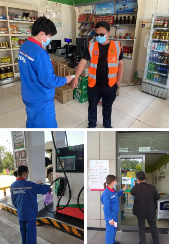 加油站作为人员、车辆流动区域,疫情防控尤为重要,各站点严格执行重点区域(加油枪、营业室把手、加油机等)不少于3次消杀要求,严格落实扫码、测温等措施。同时为客户备好消毒液、洗手液,引导客户使用中石化“一键加油”,实现无接触加油消费,提升客户消费体验和满意度。在加强疫情防控的同时,严格按照“八步法”、接卸油流程进行规范操作,确保安全运营。