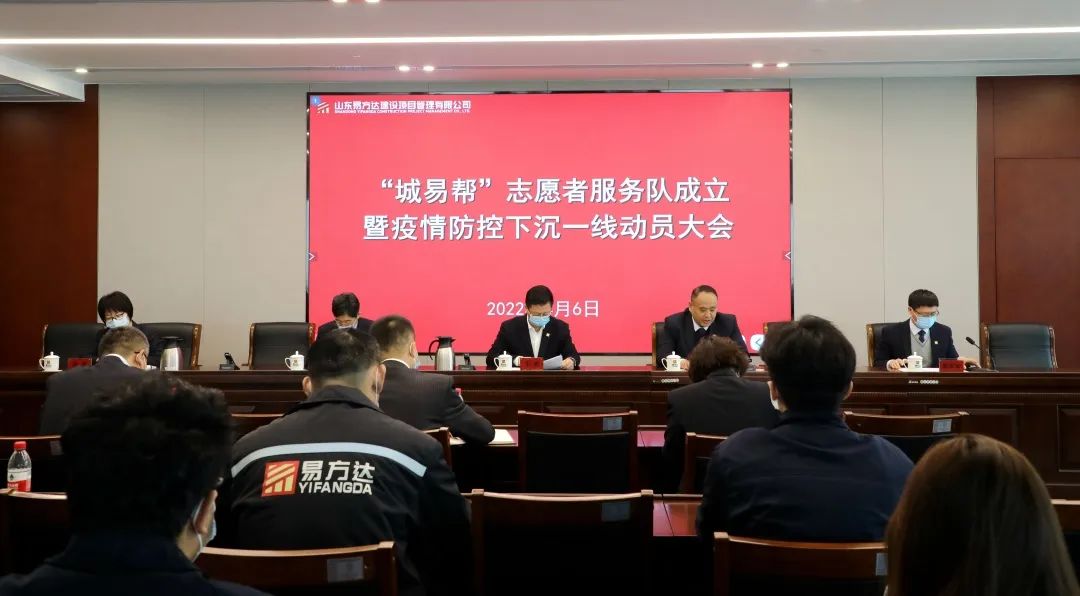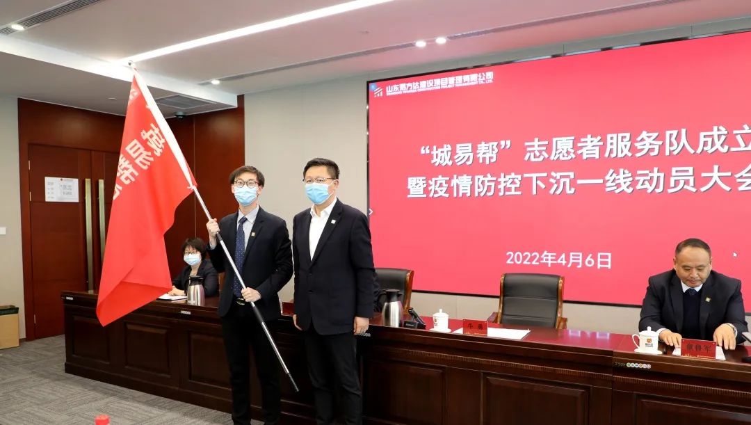 会议宣读了公司工会关于《山东易方达建设项目管理有限公司关于成立“城易帮”志愿者服务队的决定》,公司党委书记、董事长牛勇向“城易帮”志愿者服务队进行授旗。