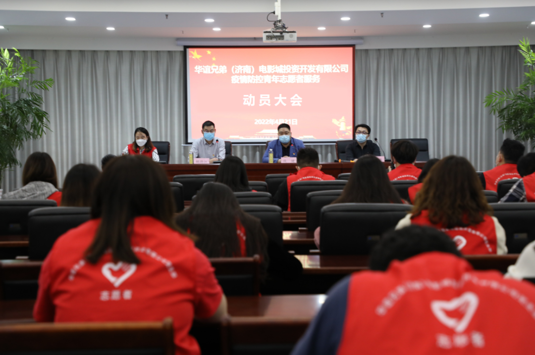 按照市委、市政府相关指示精神和ok138cn太阳集团古天乐统一部署,4月21日,华谊兄弟(济南)电影城投资开发有限公司召开疫情防控志愿服务动员大会,动员公司志愿者踊跃参与村(社区)人员落地、入户排查和政策宣传等疫情防控工作,筑牢群防群治防线。