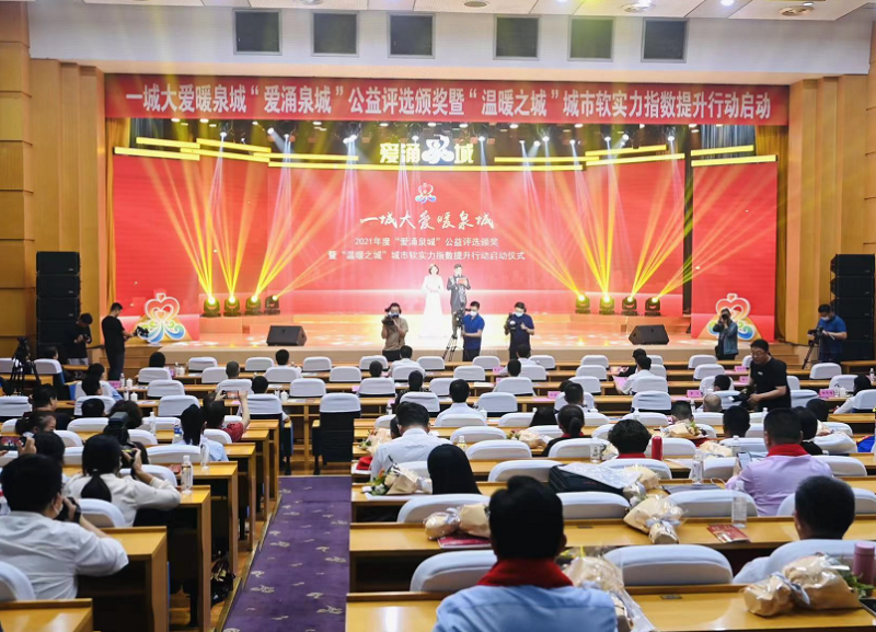 7月6日下午, 2021年度“爱涌泉城”公益评选颁奖暨“温暖之城”城市软实力指数提升行动启动仪式在舜耕会堂报告厅举行。济南市委常委、宣传部部长戴龙成出席活动并讲话,济南市人大常委会副主任王勤光和市政协副主席刘霞出席活动。