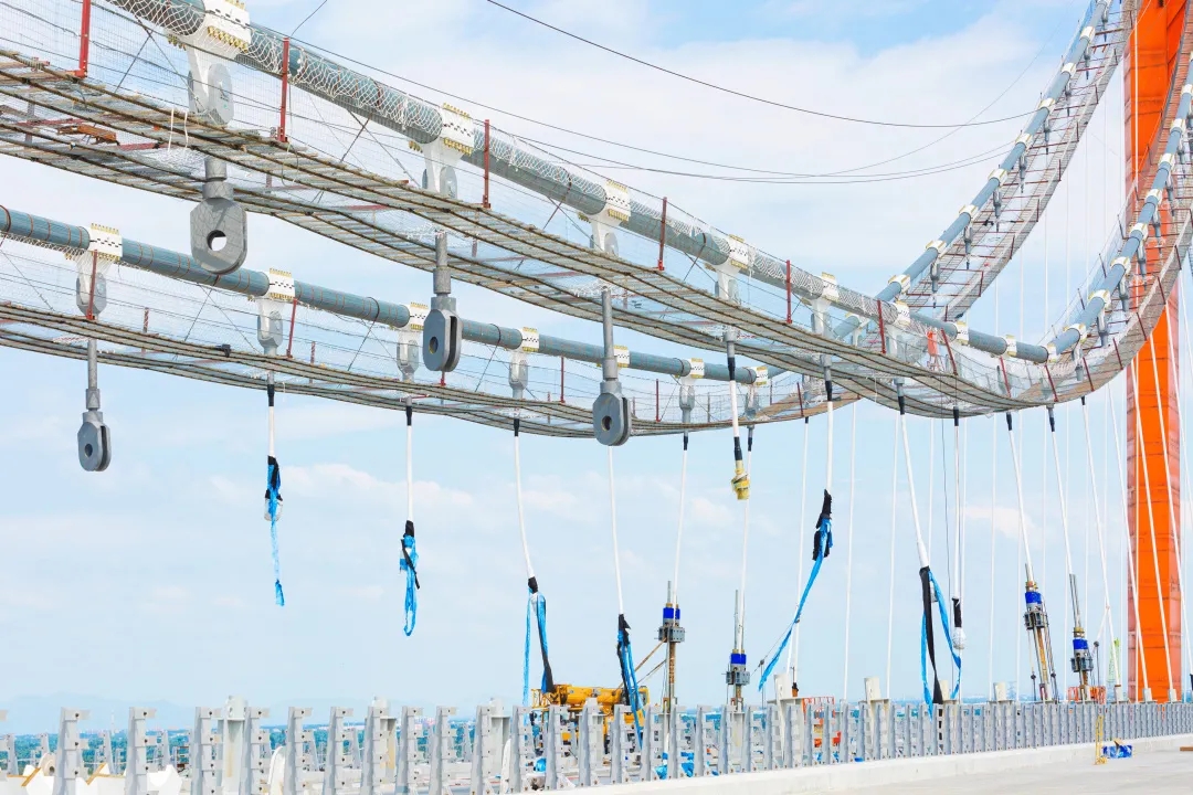 耐久之桥。项目大面积应用组合桥面板。主桥、水中引桥及跨大堤引桥的全长2788米范围内,均采用正交异性钢-混凝土组合桥面板,有效解决了钢桥面系疲劳及桥面铺装易损难题,增加结构耐久性和可维护性。