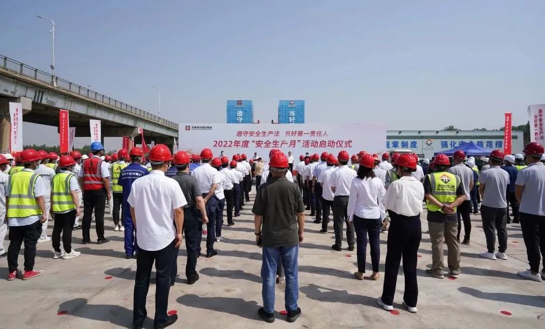 为进一步营造安全生产氛围,宣传安全生产知识,推动全员安全生产责任落实,6月1日,集团举行2022年度“安全生产月”活动启动仪式,济南市交通运输局局党组成员、副局长姜春华,济南市应急调研员宫维权,信访处处长王正大,济南市住房城乡建设局质安处处长杨一伟,建设集团党委书记、董事长史海成,集团党委副书记、总经理许为民,集团领导班子成员,集团各部室、子公司、项目参建单位相关负责同志参加活动。