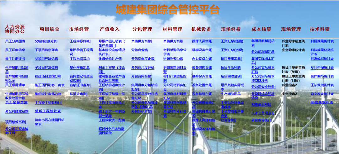 信息平台数据“不敢用”“不能用”是通病,还需要保留线下报表,主要原因是平台数据不全、不准,不能给企业日常管理、经营决策提供有力支撑。经过多年积累及开发,城建集团公司编制了600多个报表,实现了多层级、跨部门、多维度时时分析查询,全面替代了线下表格,实现了企业信息的“标准化、信息化、精细化”。